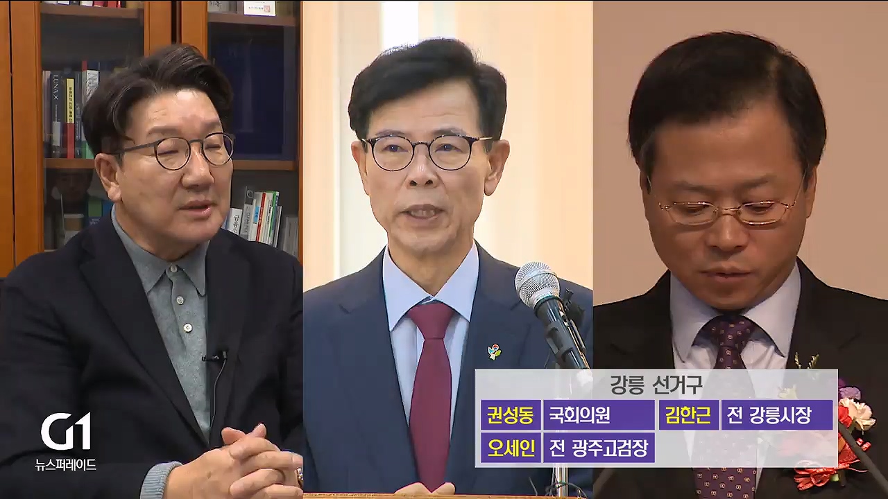 도내 최다선이자 원조 윤핵관인 권성동 의원의 5선 행에 김한근 전 강릉시장과 오세인 전 광주고검장이 도전했습니다.
