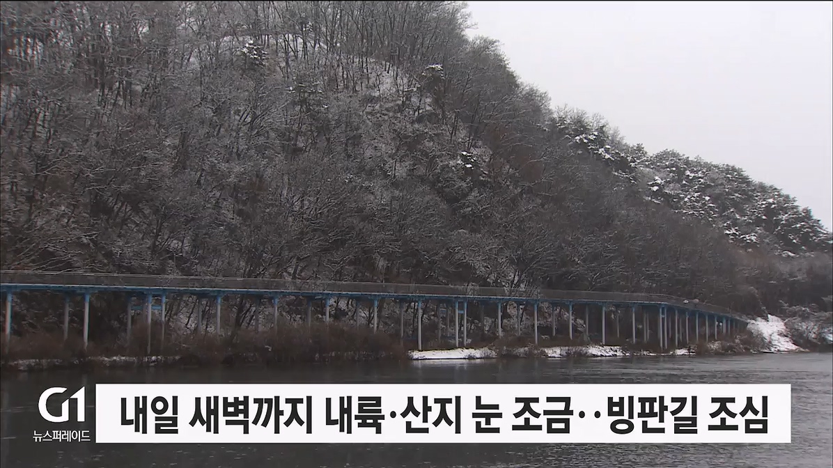내일 새벽까지 내륙·산지 눈 조금..빙판길 조심