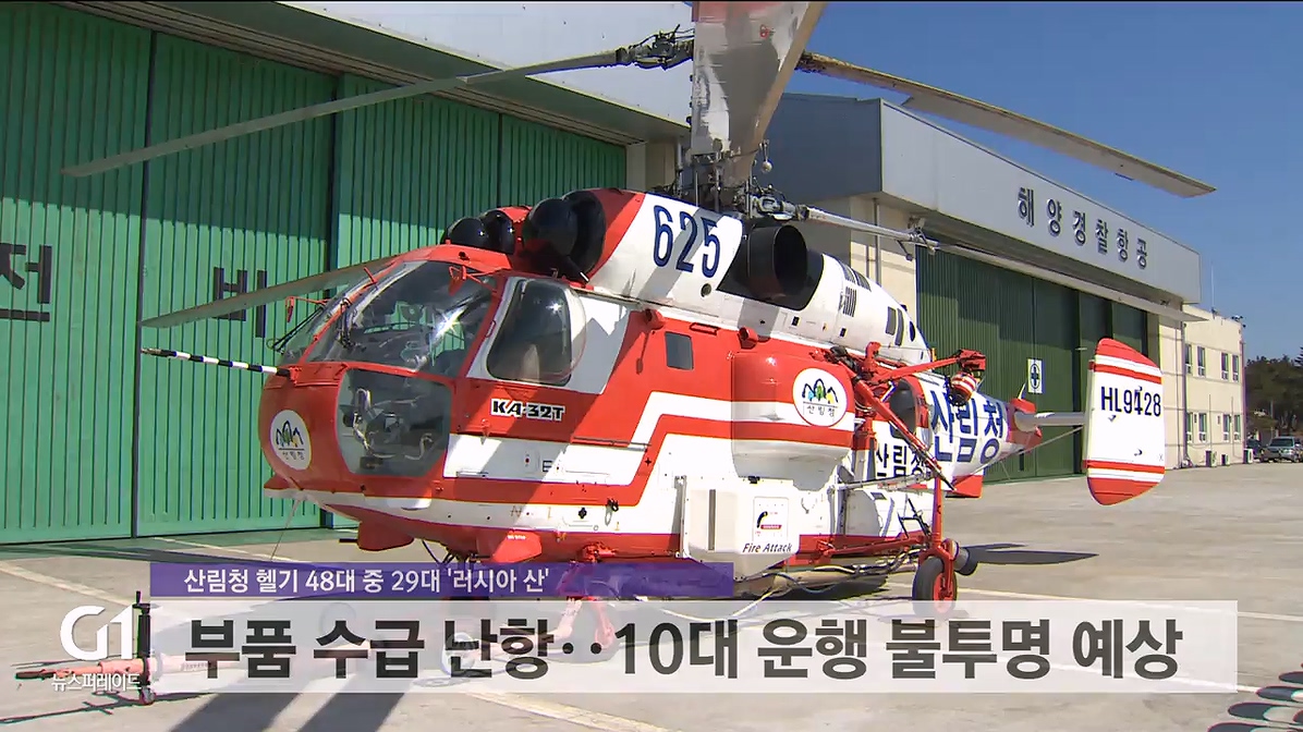 산림청이 보유하고 있는 진화헬기 48대 가운데 60%인 29대가 러시아산인데, 이중 10대 정도가 부품 수급이 어려워 운항이 불투명한 상황입니다.