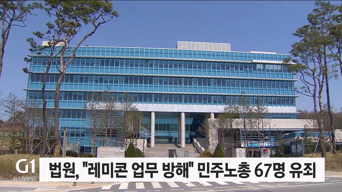 춘천지법 원주지원 형사2단독 박현진 부장판사는 업무방해 혐의로 기소된 민주노총 레미콘 지회 간부 A씨 등 8명에게 징역형에 집행유예를, 조합원 59명에게는 벌금형을 각각 선고했습니다.
