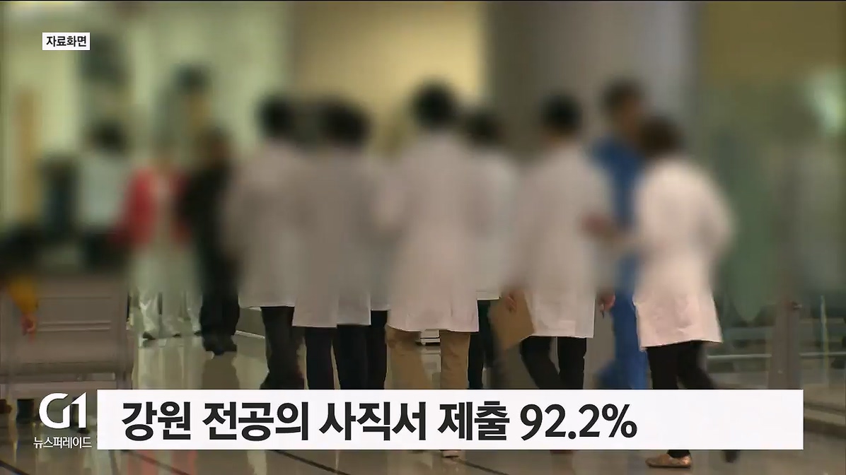 강원자치도에 따르면, 4개 대학병원과 의료원 등을 포함한 9개 도내 수련병원에서 전체 전공의 385명 중 355명인 92.2%가 사직서를 제출했습니다.