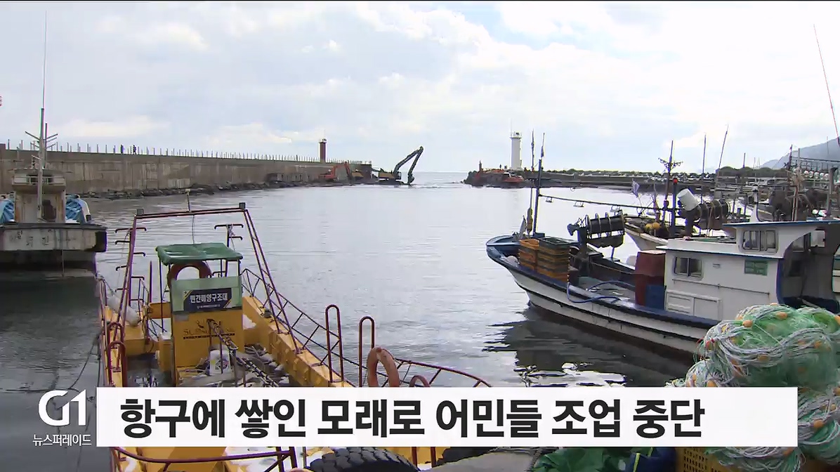 "(항구)입구를 모래가 다 덮어서 아예 배가 나갈 수가 없어요. 항 안에 보시면 모래도 어마어마하게 들어와 있고, 배도 아예 수십척이 조업도 못 나가고 며칠째 발이 묶여있는 상태입니다."