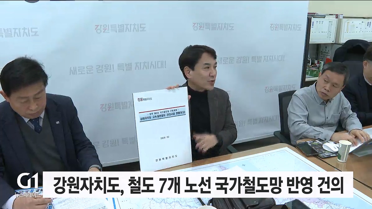 김진태 지사는 오늘(4일) 기자 브리핑에서 원주∼춘천∼철원을 연결하는 내륙종단철도와 제천∼평창 철도 등 7개 노선을 국가철도망 계획에 반영해 달라고 국토부에 요청했다고 말했습니다.