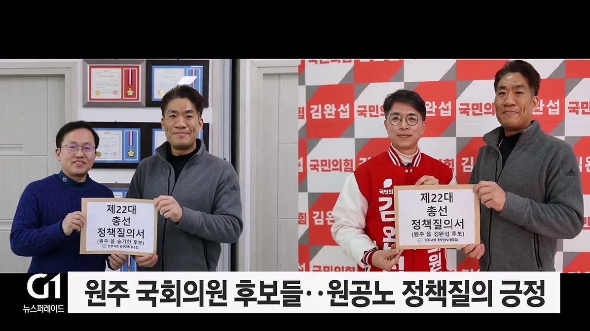 원주시 국회의원 후보자들이 최근 원주시청 공무원노동조합이 전달한 정책질의에 긍정적인 답변을 내놨습니다.