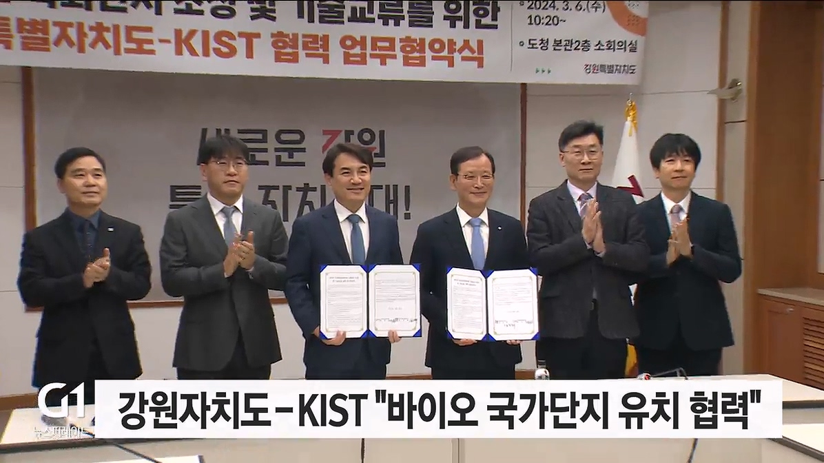 강원자치도와 한국과학기술연구원 KIST는 오늘(6일) 도청에서 '강원 바이오 첨단전략산업 특화단지 조성과 기술교류를 위한 업무협약을 체결했습니다.