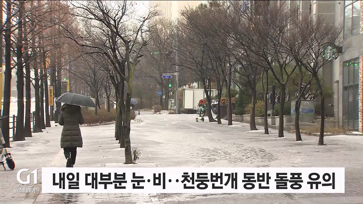 내일 대부분 눈·비..천둥 번개 동반 돌풍 유의