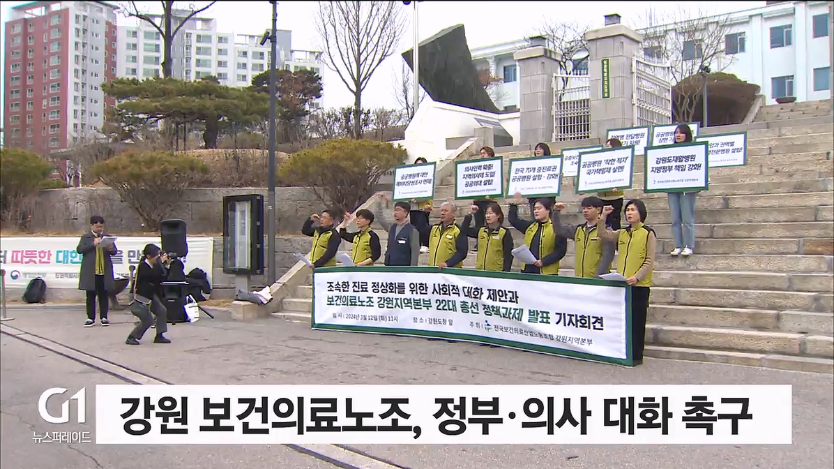전국보건의료산업노동조합 강원지역본부는 오늘(12일) 기자회견을 열고, "강대강 대치 속에 수술환자와 항암환자, 중증 응급환자들이 내팽개쳐지고 있다"고 지적했습니다.