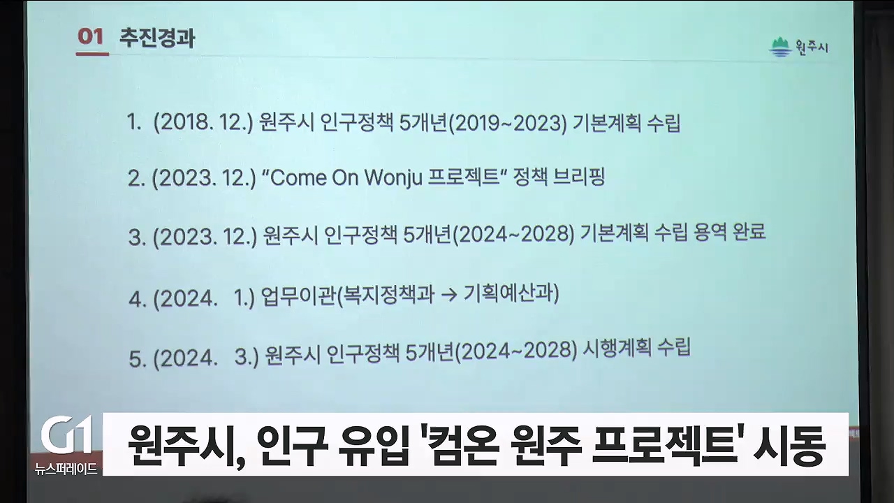 원주시가 인구 유입 정책인 '컴온 원주 프로젝트'를 추진합니다.