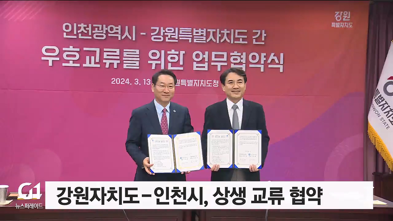 강원자치도와 인천광역시가 오늘(13일) 도청에서 '상생발전을 위한 우호교류 업무 협약'을 체결했습니다.