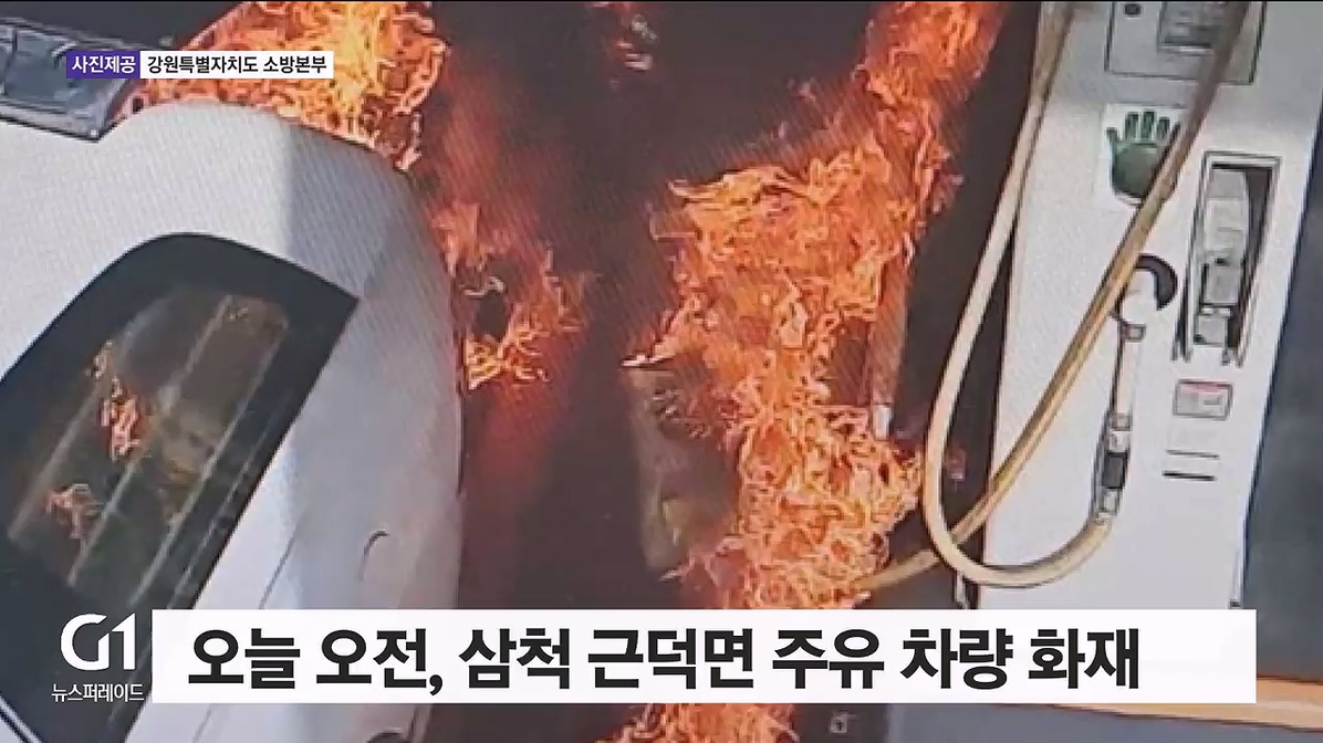 오늘 오전 9시43분쯤 삼척 근덕면 상맹방리의 한 주유소에서 주유중이던 차량에서 화재가 발생해 7분여 만에 진화됐습니다.