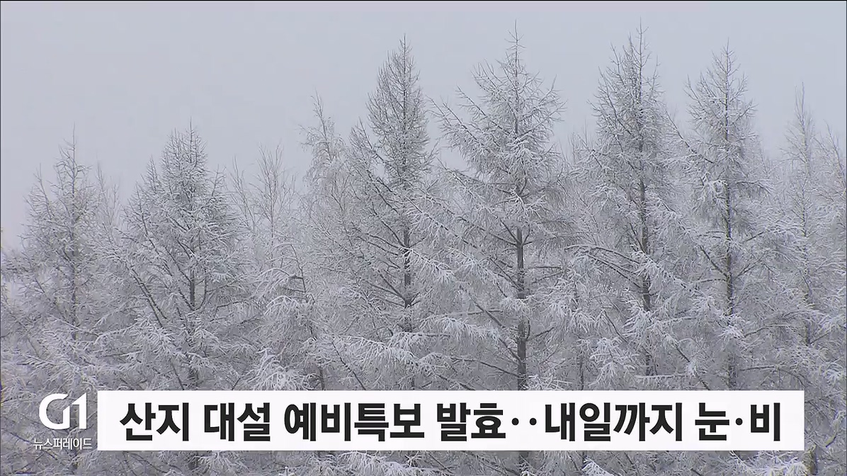 강원자치도는 산지를 중심으로 대설 예비특보가 발효된 가운데, 내일(20일)까지 눈 또는 비가 내리겠습니다.