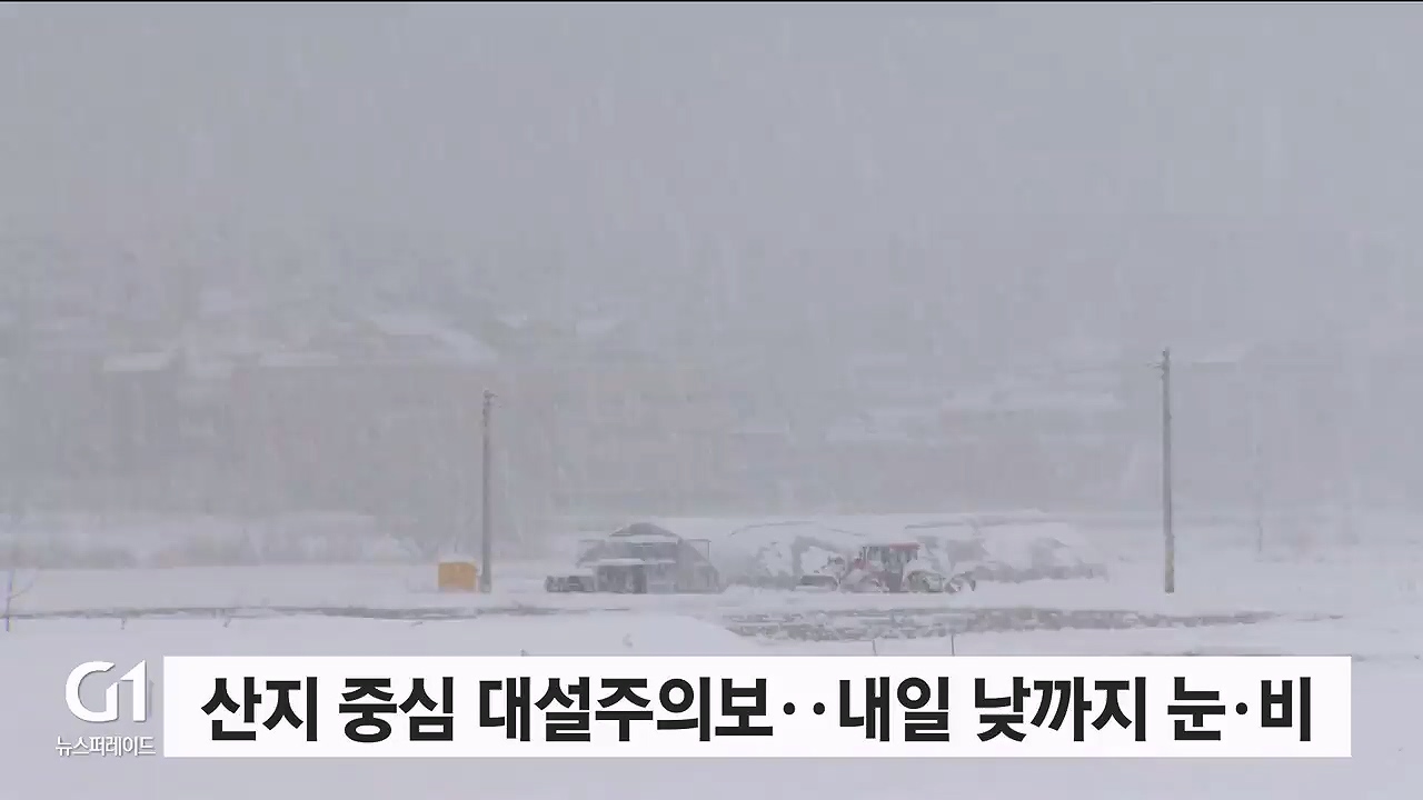 강원자치도는 산지를 중심으로 대설주의보가 발효된 가운데, 내일(26일) 낮까지 눈 또는 비가 내리겠습니다.