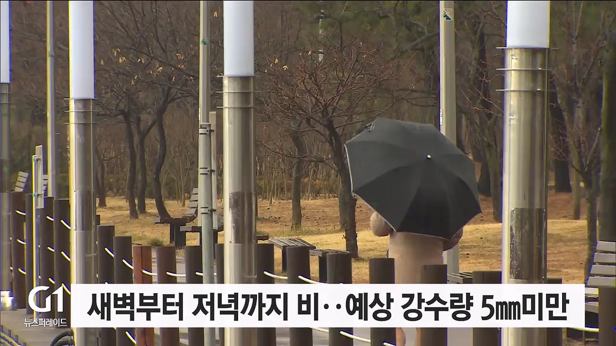새벽부터 저녁까지 비..예상 강수량 5mm미만