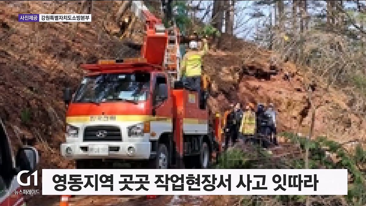 앞서 9시 42분쯤 삼척시 도계읍 인근 벌목 현장에서는 50대 작업자 B씨가 제거 작업 중 나무에 맞는 사고가 발생해,