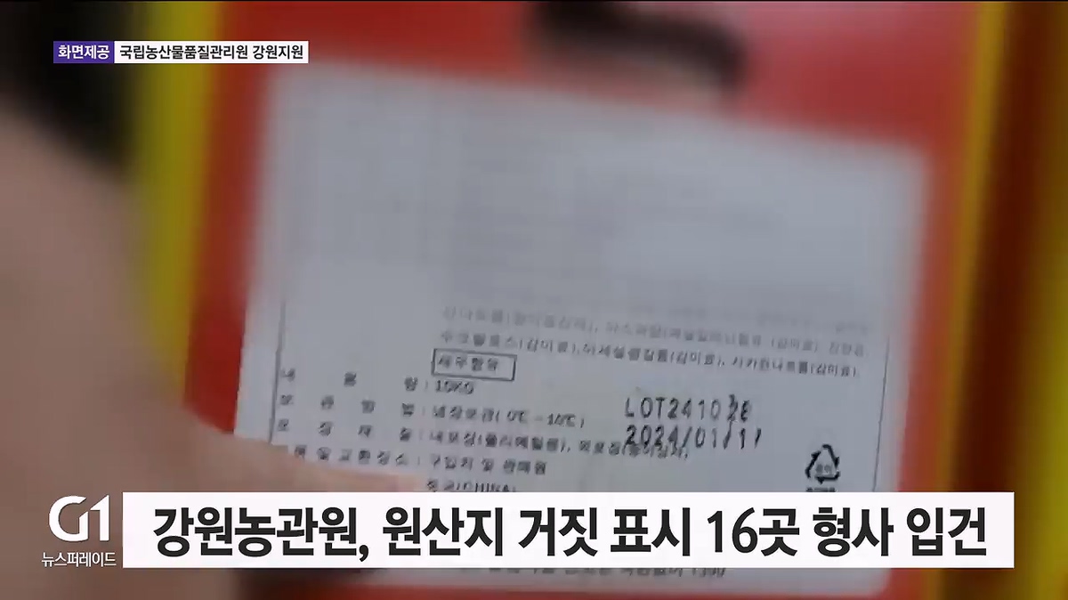 강원농관원, 원산지 거짓 표시 16곳 형사 입건