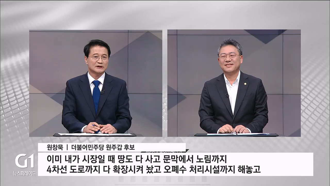 제22대 국회의원 선거를 앞두고 '원주갑 후보자 토론회'가 어제(28일) G1 방송에서 열렸습니다.