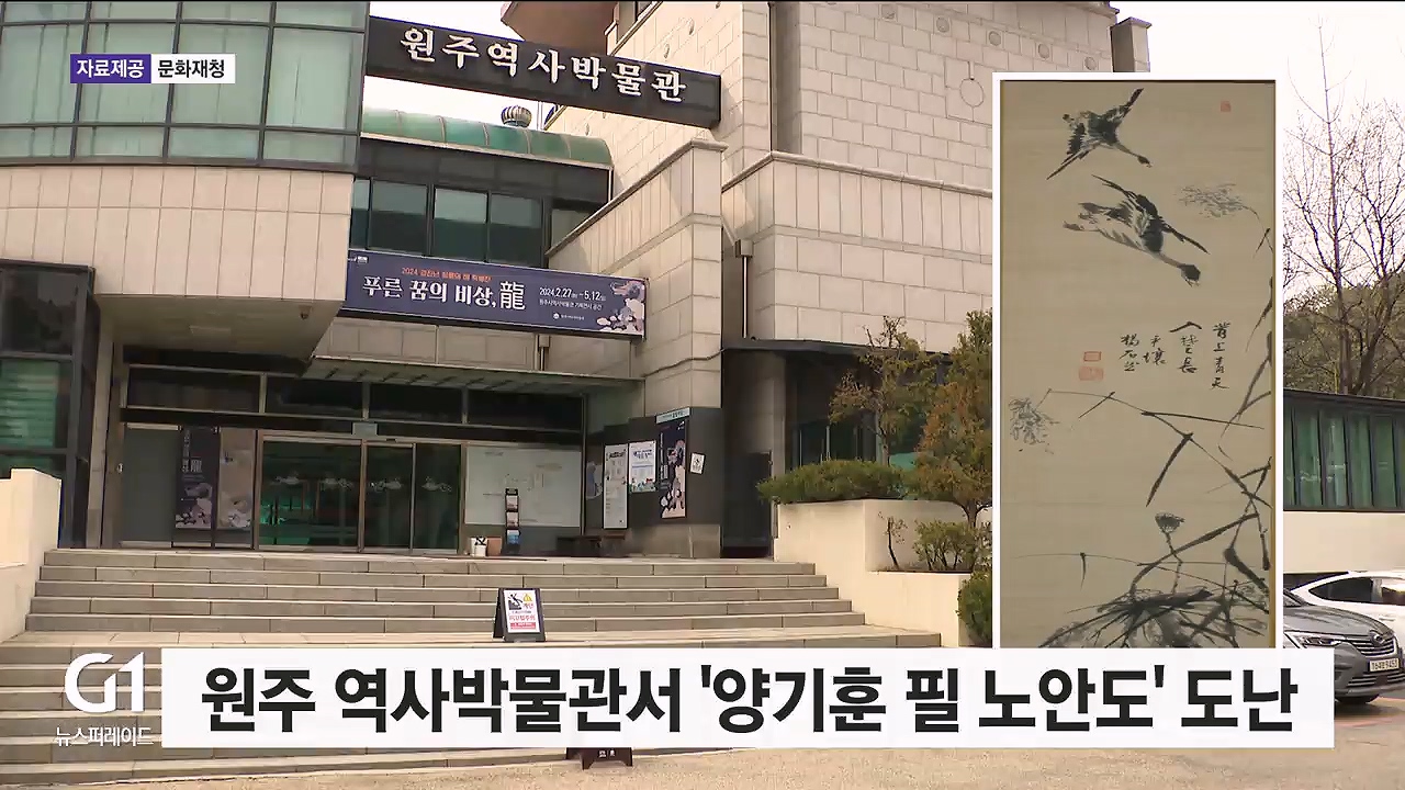 원주시 역사박물관에 소장 중이던 양기훈 필 노안도가 도난당해 4개월째 찾지 못하고 있습니다.