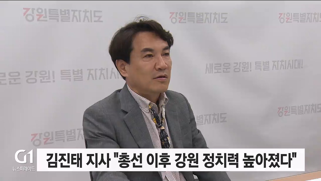 김진태 지사는 오늘(15일) 기자브리핑에서 "이번에 당선된 8명의 도 지역구 국회의원들 당선 횟수를 모두 합치면 24선이라며, 평균 3선의 중진 의원들이 돼 강원 정치력이 높아졌다"라고 평가했습니다.