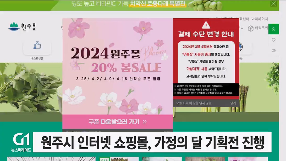 원주시 공식 인터넷 쇼핑몰 '원주몰'이 오는 23일부터 다음달 말까지 '가정의 달 기획전'을 진행합니다.