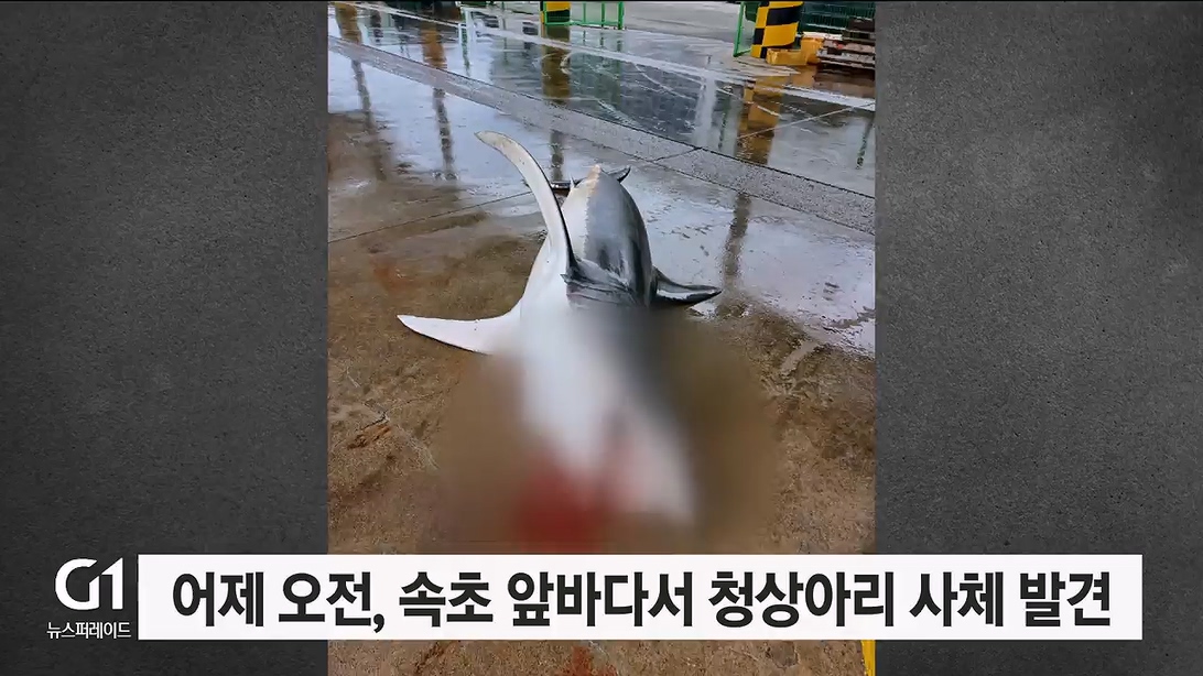 속초시 장사항 인근 해상에서 청상아리가 그물에 걸려 죽은채 발견됐습니다.
