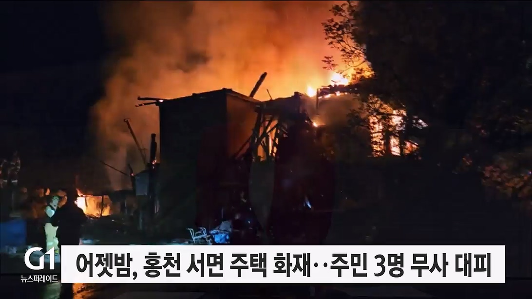 어젯밤, 홍천 서면 주택 화재..주민 3명 무사 대피