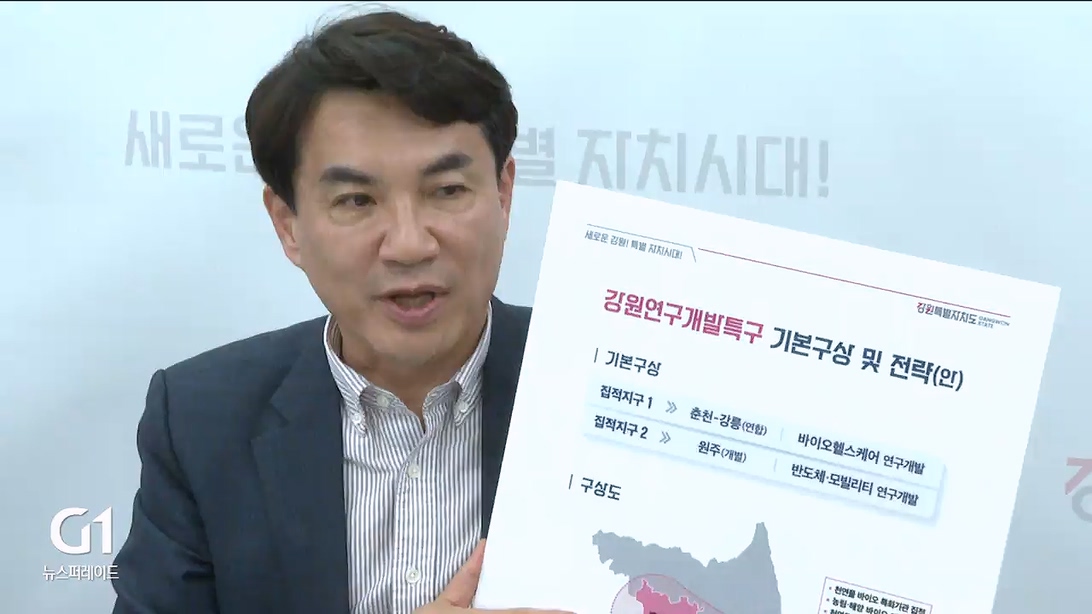 강원자치도는 '춘천-강릉 연합 바이오헬스케어 지구'와 '원주 반도체.모빌리티 지구'를 아우르는 강원연구개발특구 기본 구상을 발표했습니다.