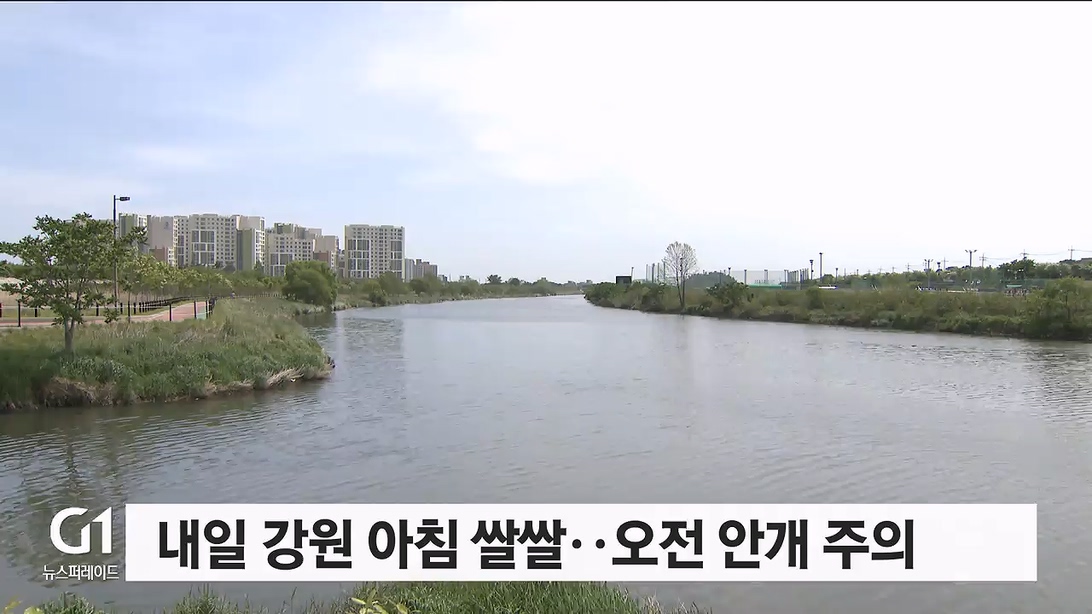 강원지방기상청은 내일 오전에 내륙을 중심으로 가시거리 1km 미만의 안개가 끼는 곳이 있겠다며, 교통안전에 유의할 것을 당부했습니다.