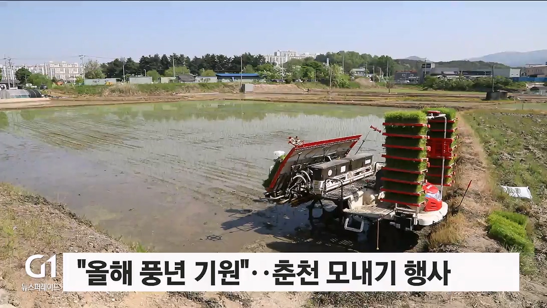 풍년 모내기 행사에서는 육동한 춘천시장과 김진호 춘천시의장 등이 참여해 시 대표 품종인 삼광벼를 이앙했습니다.
