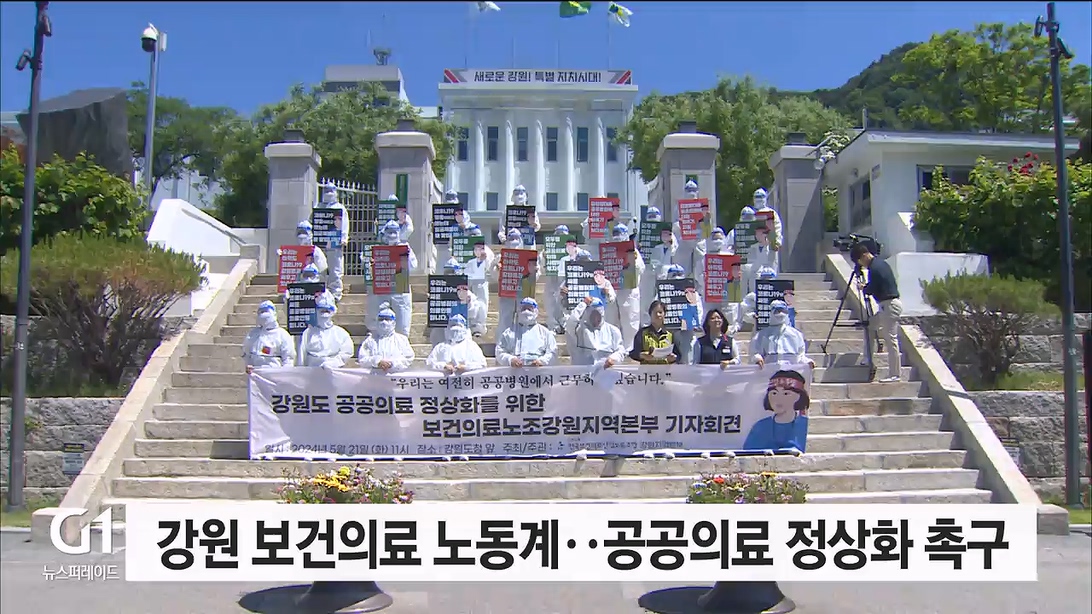 강원지역 보건의료계 노동자들이 오늘(21일) 도청 앞에서 공공의료 정상화를 촉구하는 기자회견을 열었습니다.
