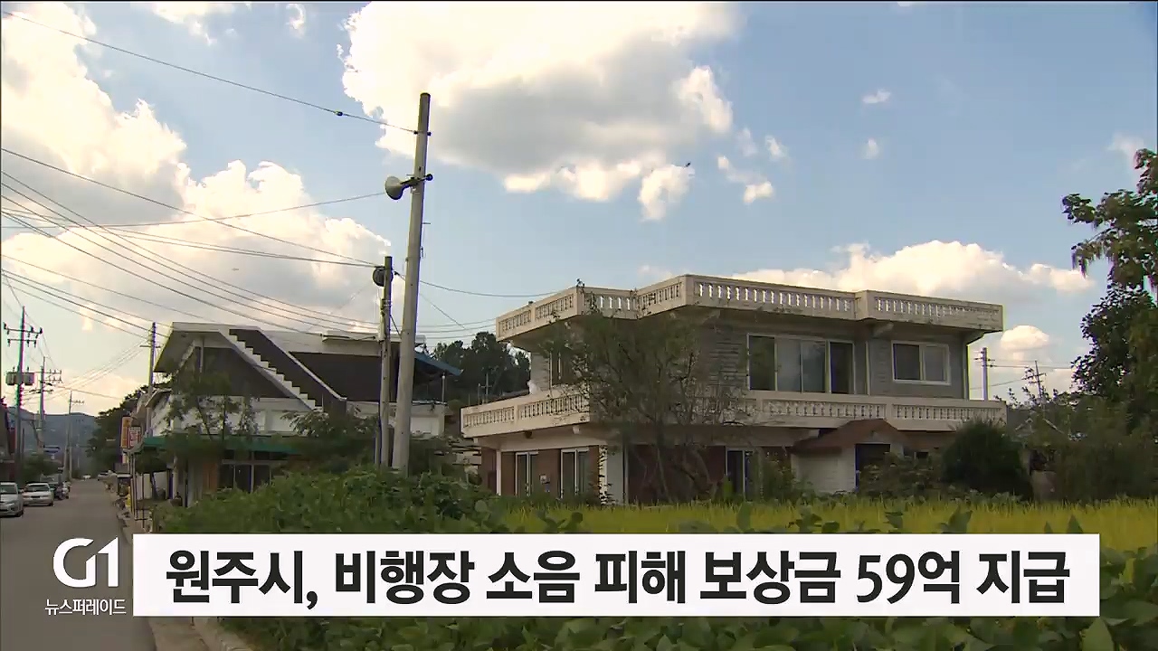 원주시, 비행장 소음 피해 보상금 59억 지급