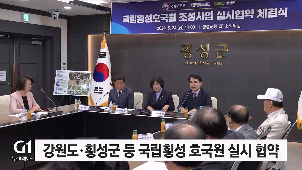 강원자치도와 횡성군, 국가보훈부가 오늘(24일) 국립횡성호국원 조성 사업의 원활한 추진을 위한 실시 협약을 체결했습니다.