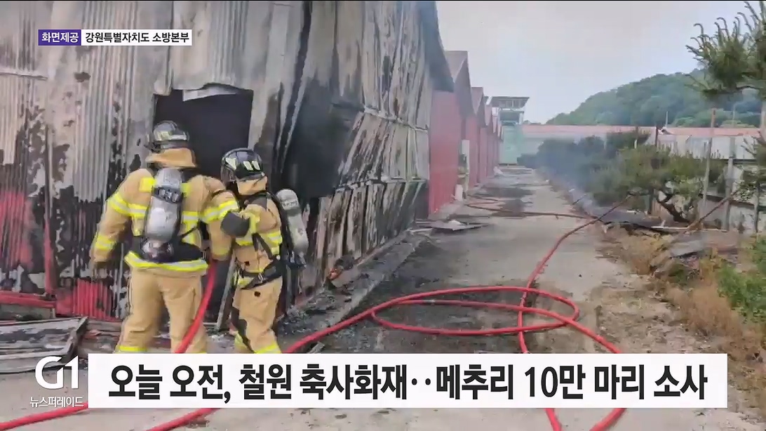 오늘 오전, 철원 축사 화재..메추리 10만 마리 소사