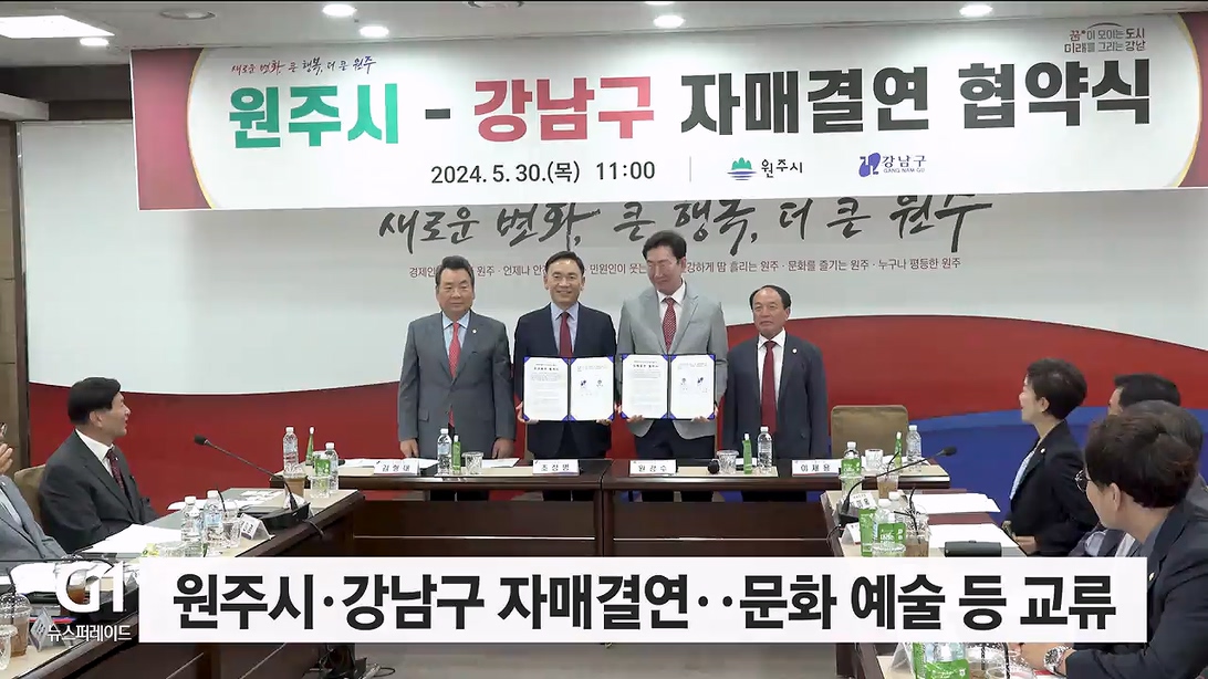 원주시가 오늘(30일) 시청에서 강남구청과 자매 결연을 맺었습니다.
