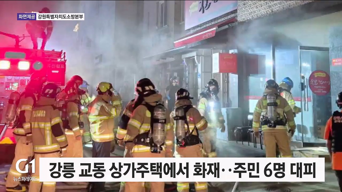 오늘 새벽 강릉 상가주택 화재..주민 6명 대피