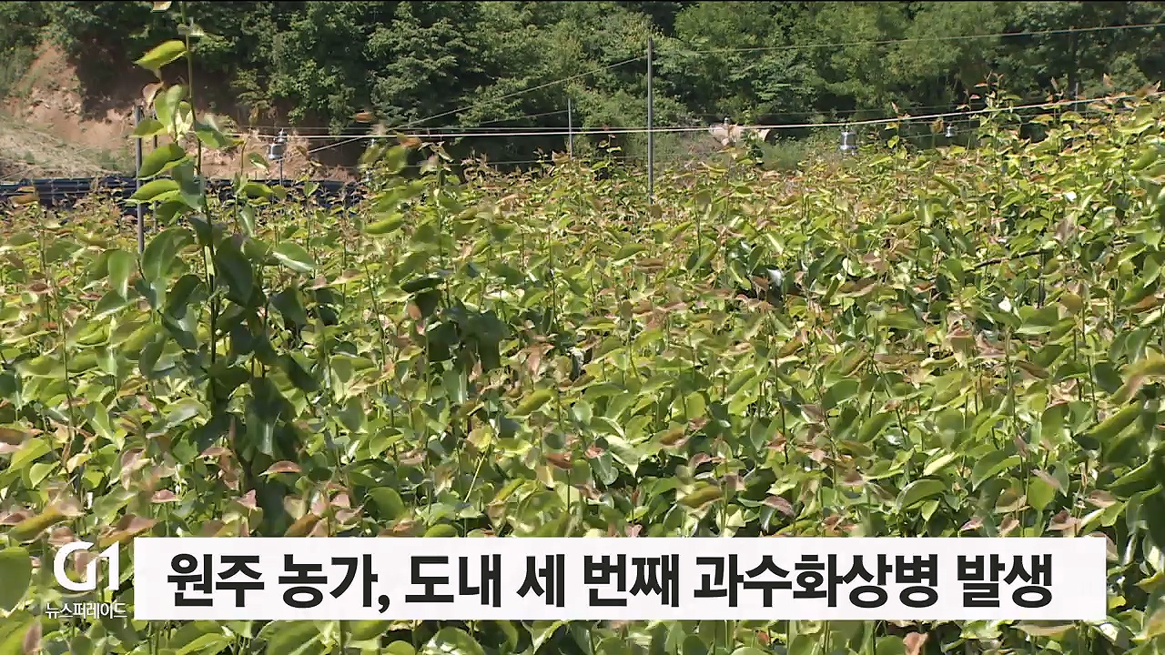원주시에 따르면 지난 10일 무실동의 한 농가에서 배나무 6그루가 잎과 가지 마름 등 증상이 나타나 과수화상병 확진 판정을 받았습니다.