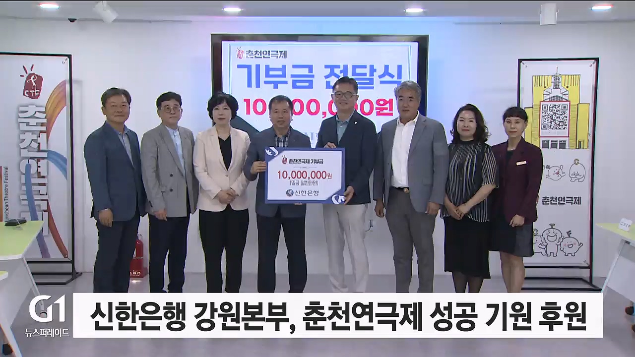 신한은행 강원본부는 오늘(19일) 춘천 봄내극장에서 '2024 춘천연극제' 성공 개최를 위한 후원금 천만 원을 전달했습니다.