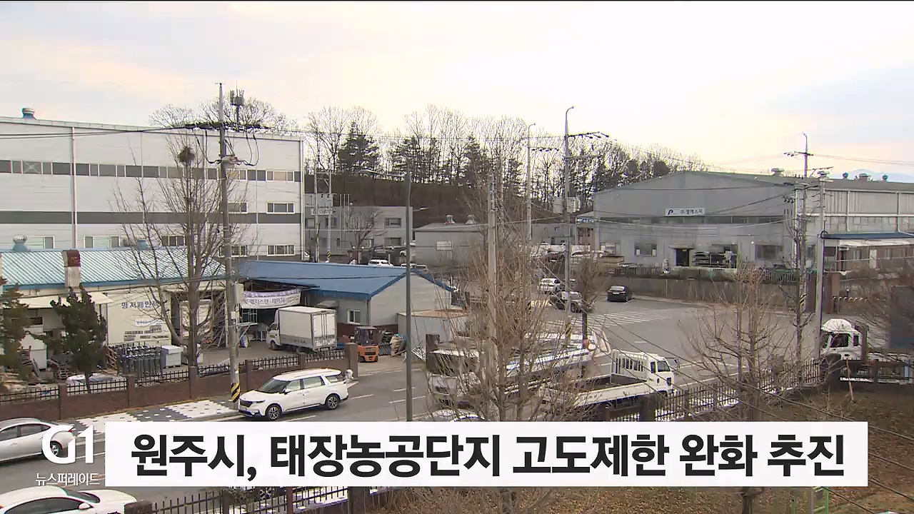 원주시가 태장농공단지 입주 기업 장기 민원 해소를 위해 고도제한 완화를 추진합니다.