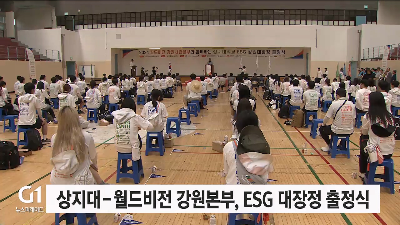 상지대학교와 월드비전 강원본부는 오늘(25일) 상지대 체육관에서 ESG 강원대장정 출정식을 가졌습니다.