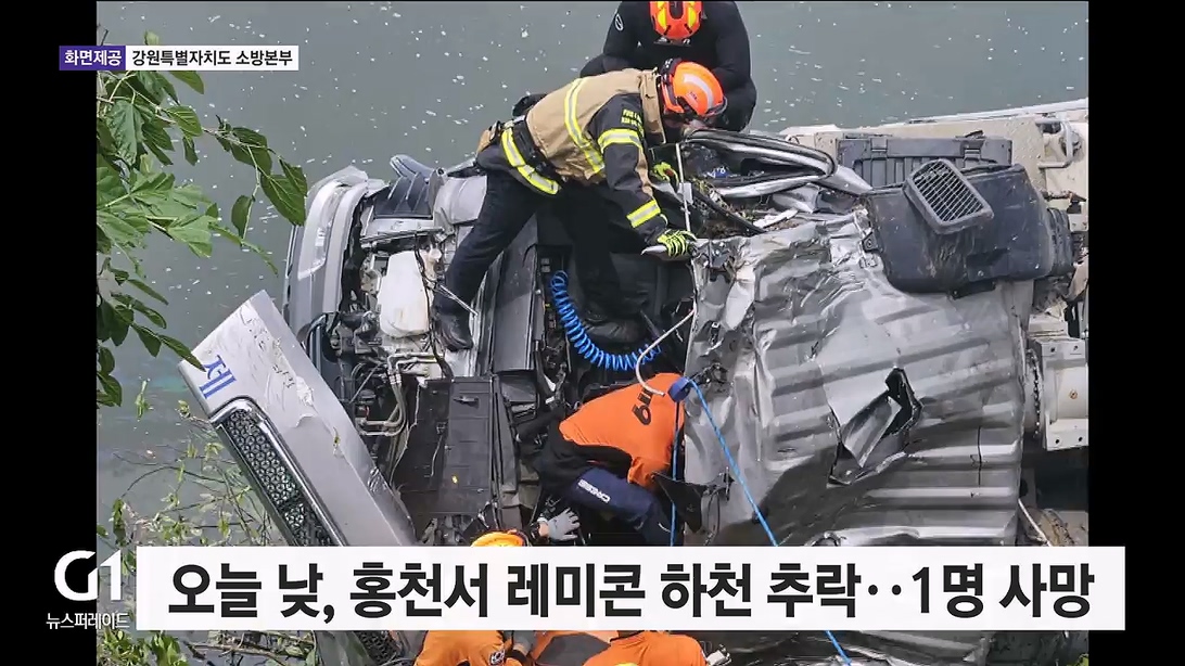 오늘 낮, 홍천서 레미콘 하천에 추락..1명 사망