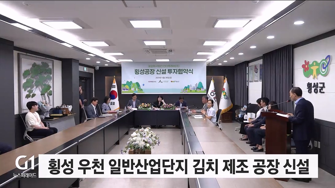 강원자치도와 횡성군, 농업회사법인 주식회사 인더후레쉬는 오늘(28일) 횡성군청에서 김치 제조 공장 신설과 관련한 투자협약을 맺었습니다.
