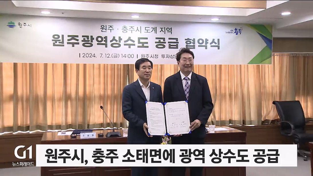 원주시와 충주시가 오늘(12일) 원주시청에서 두 지자체간 광역 상수도 공급 협약을 체결했습니다.