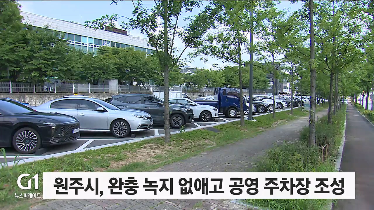 나무와 풀 등이 심어져 있는 완충 녹지를 지구단위계획 변경을 통해 주차장으로 바꾼 원주 첫 사례 입니다.