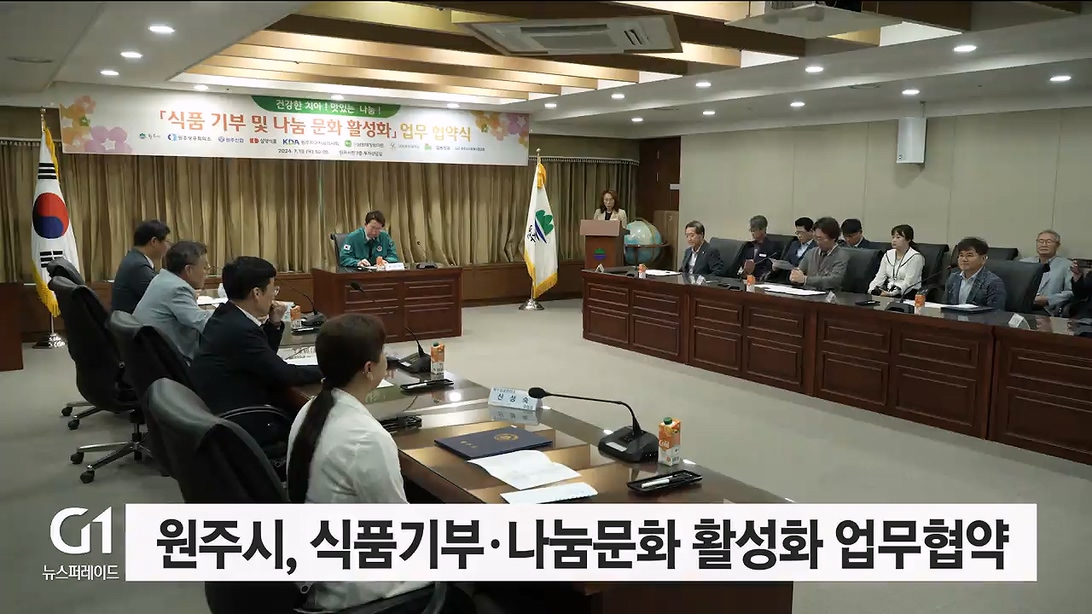 원주시가 오늘(18일) 시청에서 유관 기관과 함께 '식품기부와 나눔문화 활성화'를 위한 업무 협약을 맺었습니다.