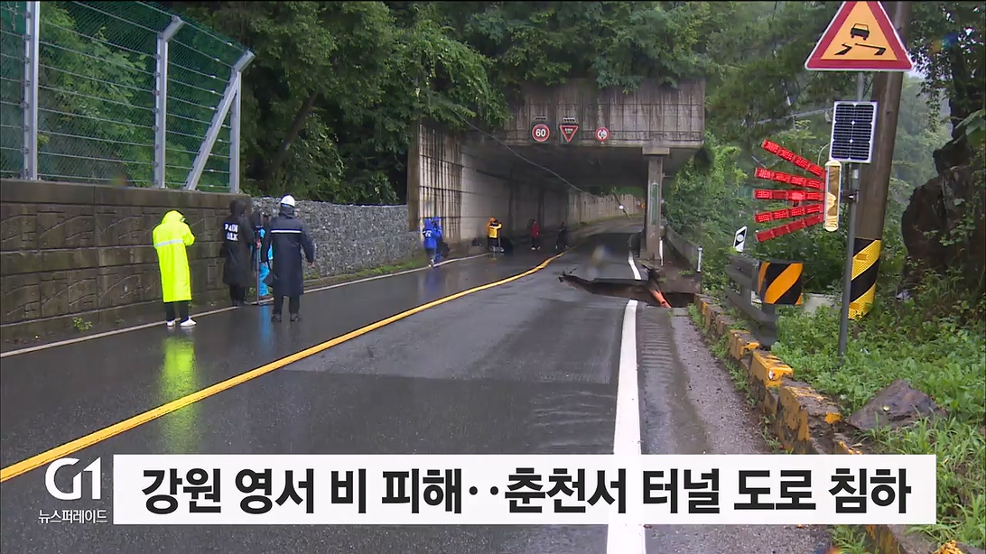 강원 영서 비 피해..춘천서 터널 도로 침하
