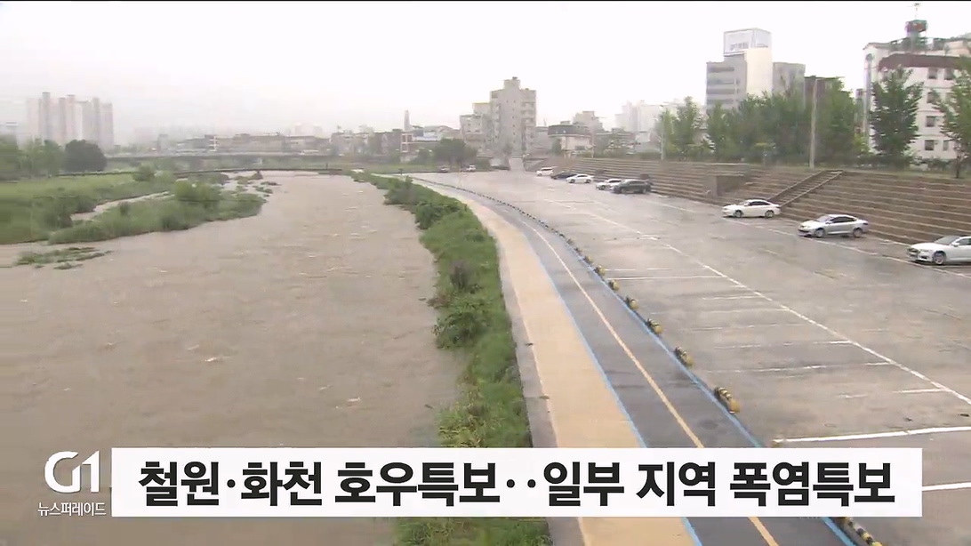 강원자치도는 오늘(22일) 철원과 화천을 중심으로 호우특보가, 동해안과 남부산지, 홍천평지를 중심으로 폭염특보가 발효된 가운데 내일(23일)도 강한 비가, 일부는 무더위가 기승을 부리겠습니다.