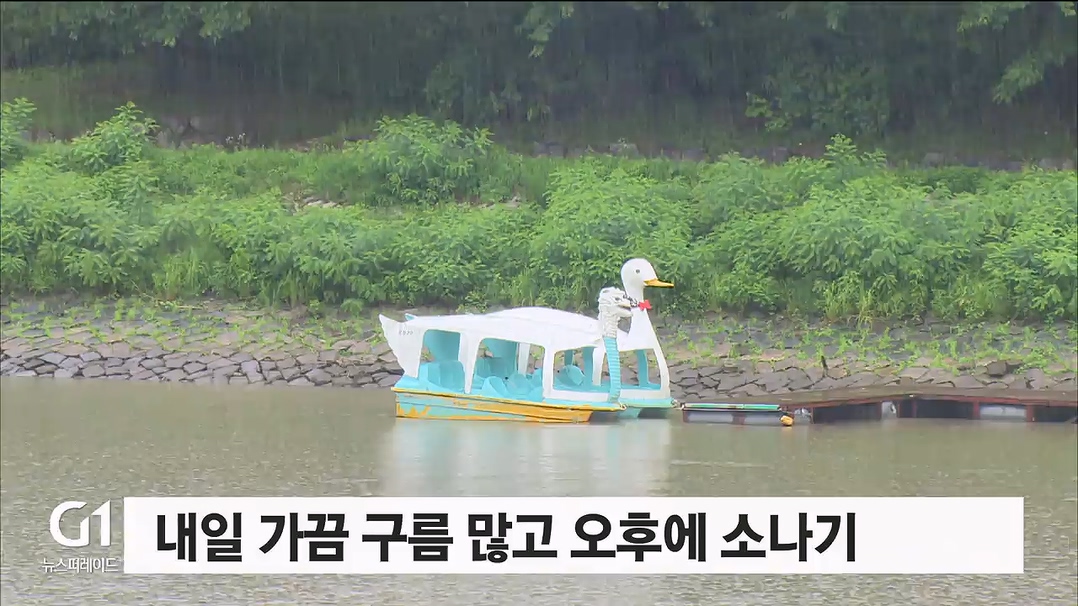 강원자치도는 내일 대체로 가끔 구름이 많겠고, 오후부터 한때 소나기가 내리겠습니다.