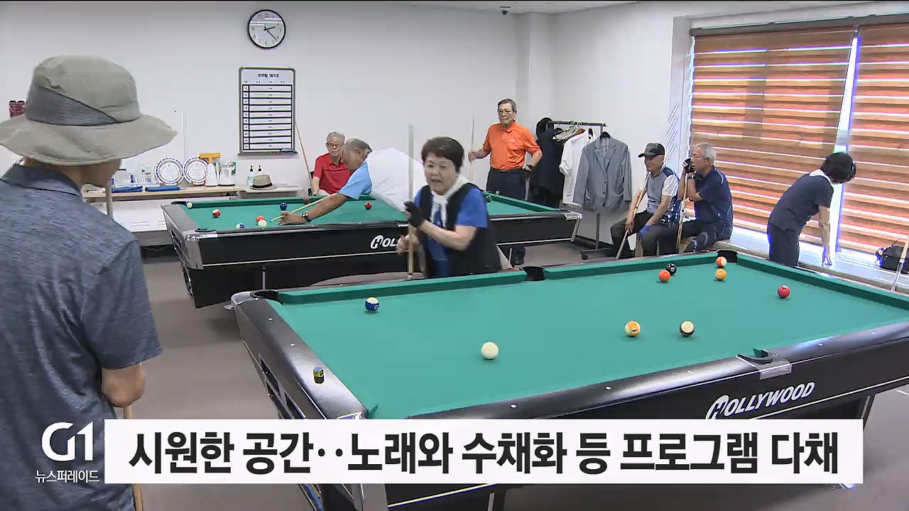 "지역 주민 누구나 더위 피해서 이용이 가능합니다. 어르신들 같은 경우에는 당구나 탁구 프로그램 모두 다 인기가 좋기 때문에 자유롭게 즐겁게 즐기고 가시는 것 같습니다."