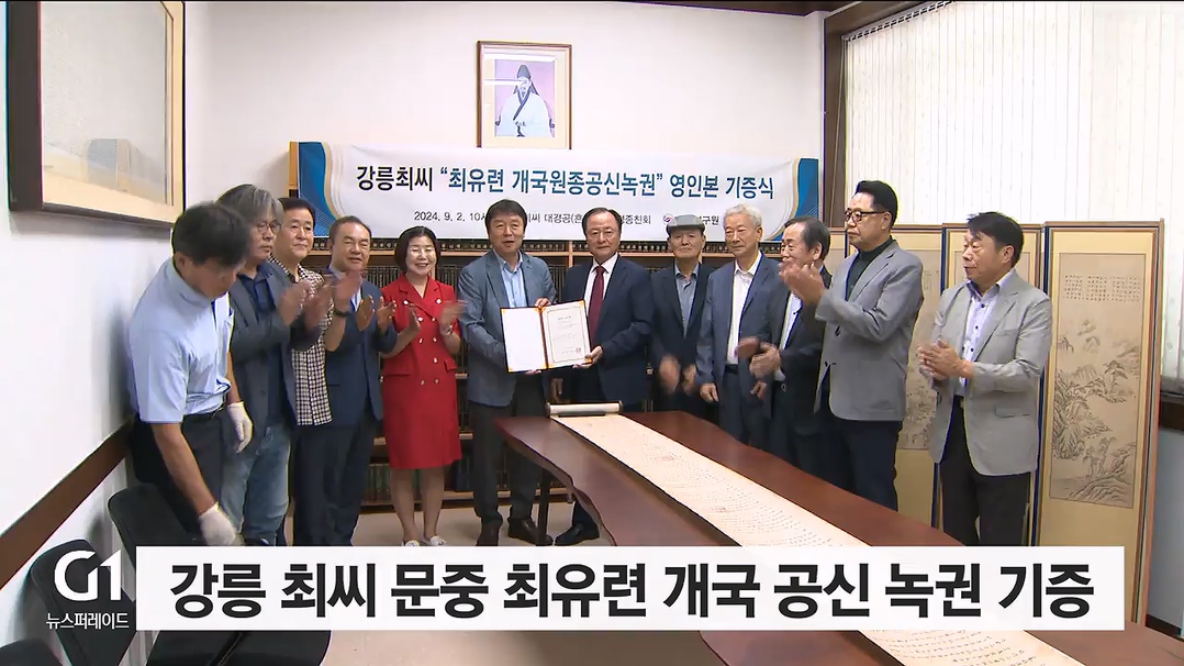 강릉 최씨 대경공계 재경종친회는 강릉 율곡문화진흥원에 '최유련 개국원종공신 녹권'을 기증했습니다.