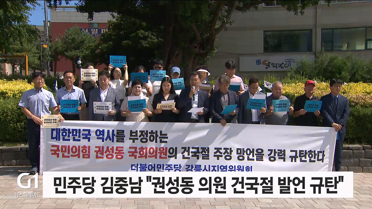 김중남 더불어민주당 강릉시지역위원장은 오늘(3일) 오전 강릉 월화거리에서 기자회견을 열고, 국민의힘 권성동 국회의원의 건국절 관련 발언을 규탄했습니다.