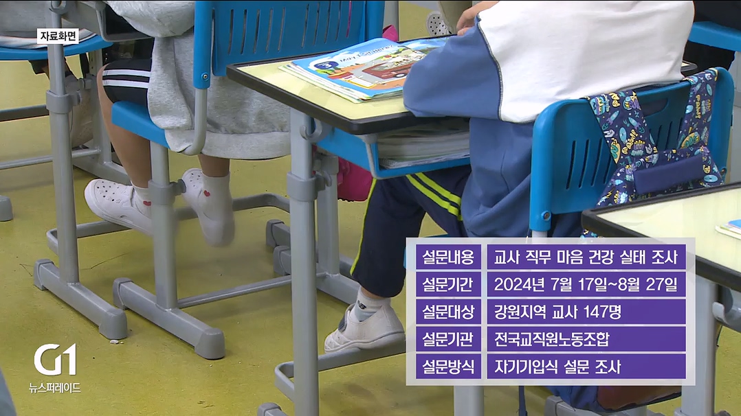 강원 교사들이 각종 폭력과 직무 스트레스로 마음 건강이 위험하다는 조사 결과가 나왔습니다.